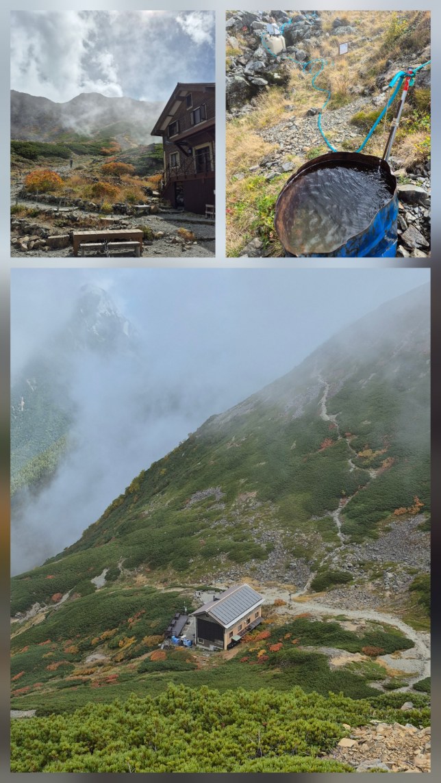 写真は仙丈小屋と水場です。南アルプスの天然水です。小屋の人が水が枯れているかもと言っていたので期待はしていませんでしたが冷たくのど越しも良かったです。