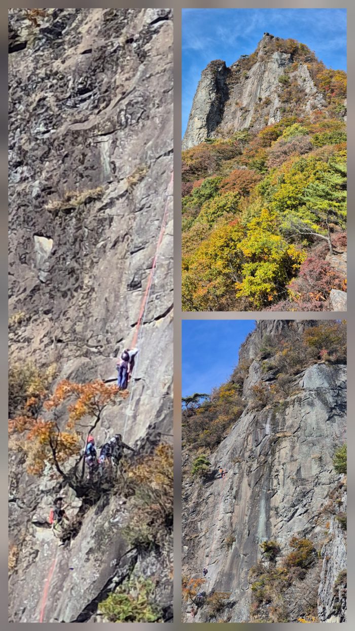 ちなみにハシゴを登ると2番目の右上の写真の岩の上です。その絶壁を登っている人たちも