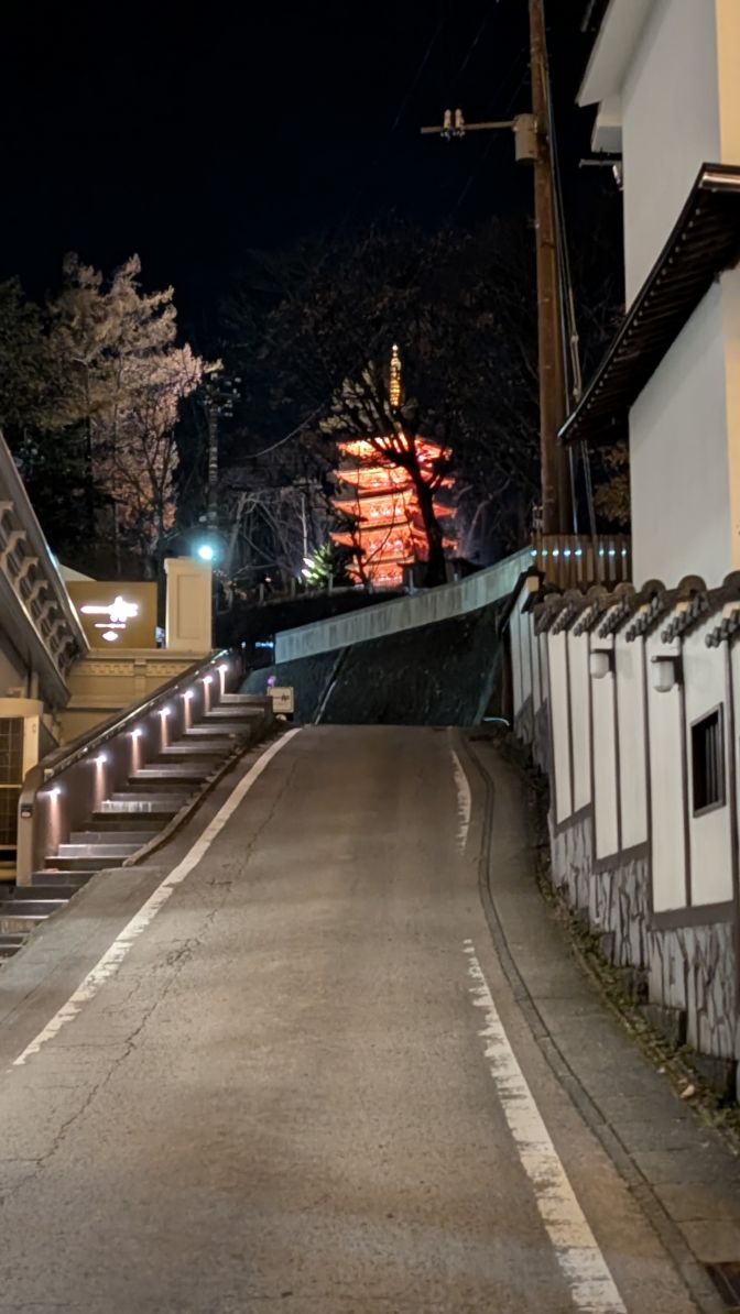 「最も空に近い五重塔」が煌々とライトアップされていました。