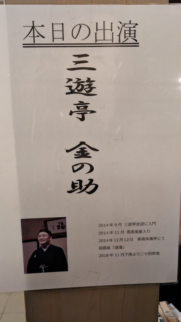 毎日午後8時から開演しているとのこと、落語家さんは持ち回りで出演。