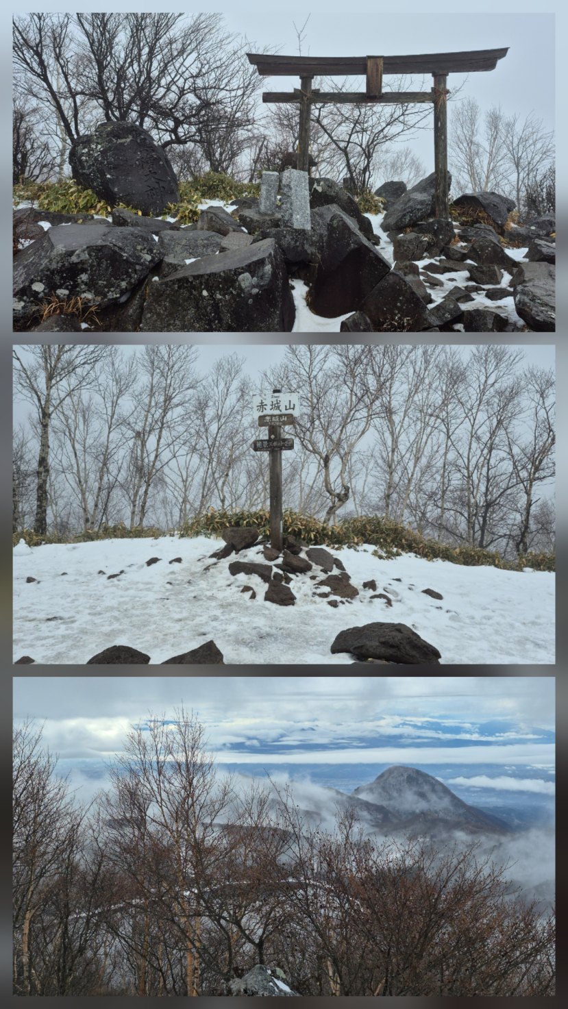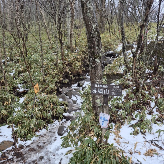 黒檜山の山頂にもあまり雪が無く、一瞬雲の切れ目から近くの山が見える程度でした。時より雨に降られ暖かいのか雪になりませんでした。