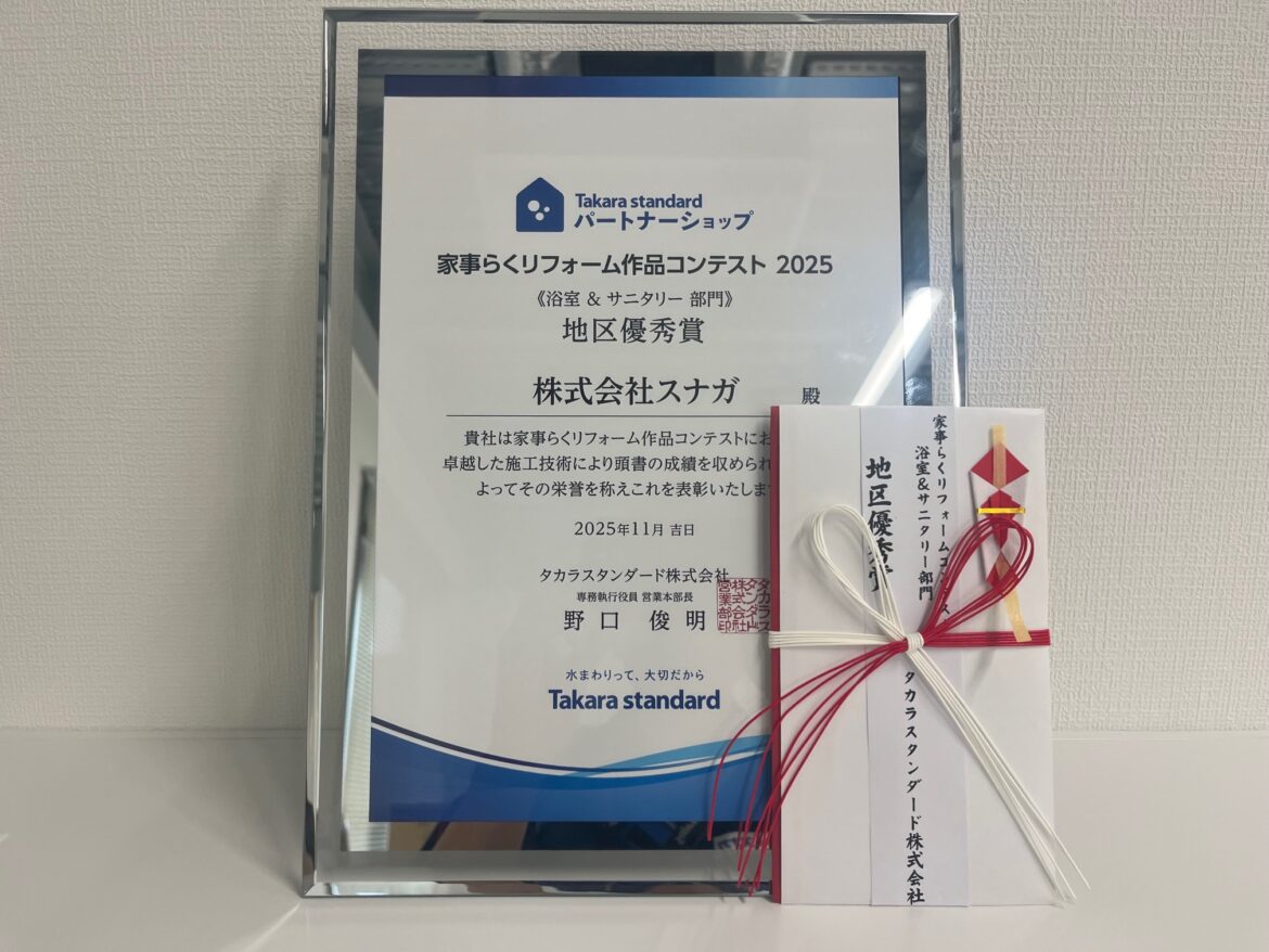 にて「浴室&サニタリー部門 地区優秀賞」という大変光栄な賞をいただき、