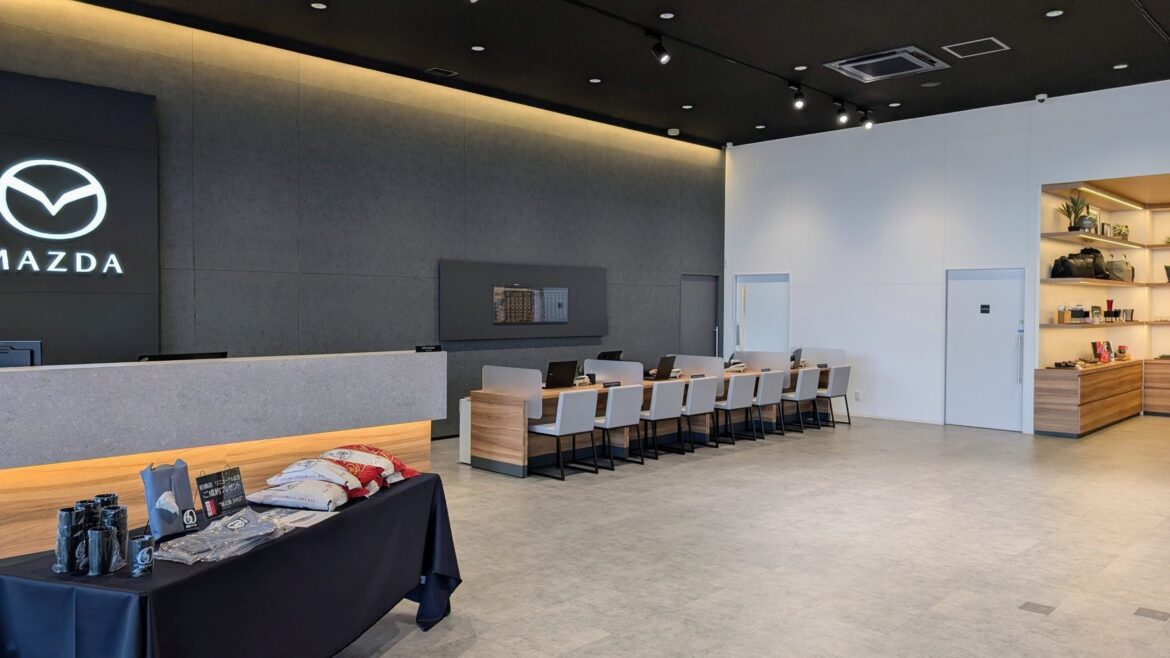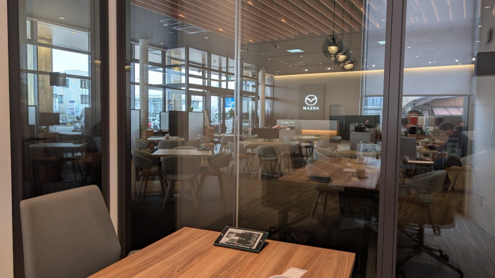 愛車を選ぶ時の大事な商談スぺ-スは奥側に2か所の個室が設けられました。