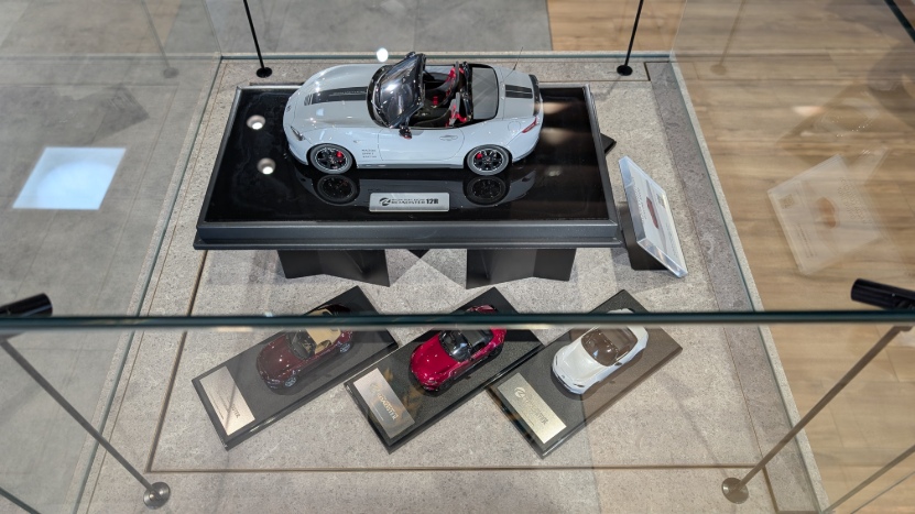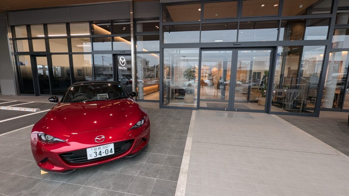 ショ-ル-ム入口では現在、ソウルレッド色のマツダ ロードスタ-が展示されお出迎え・・・