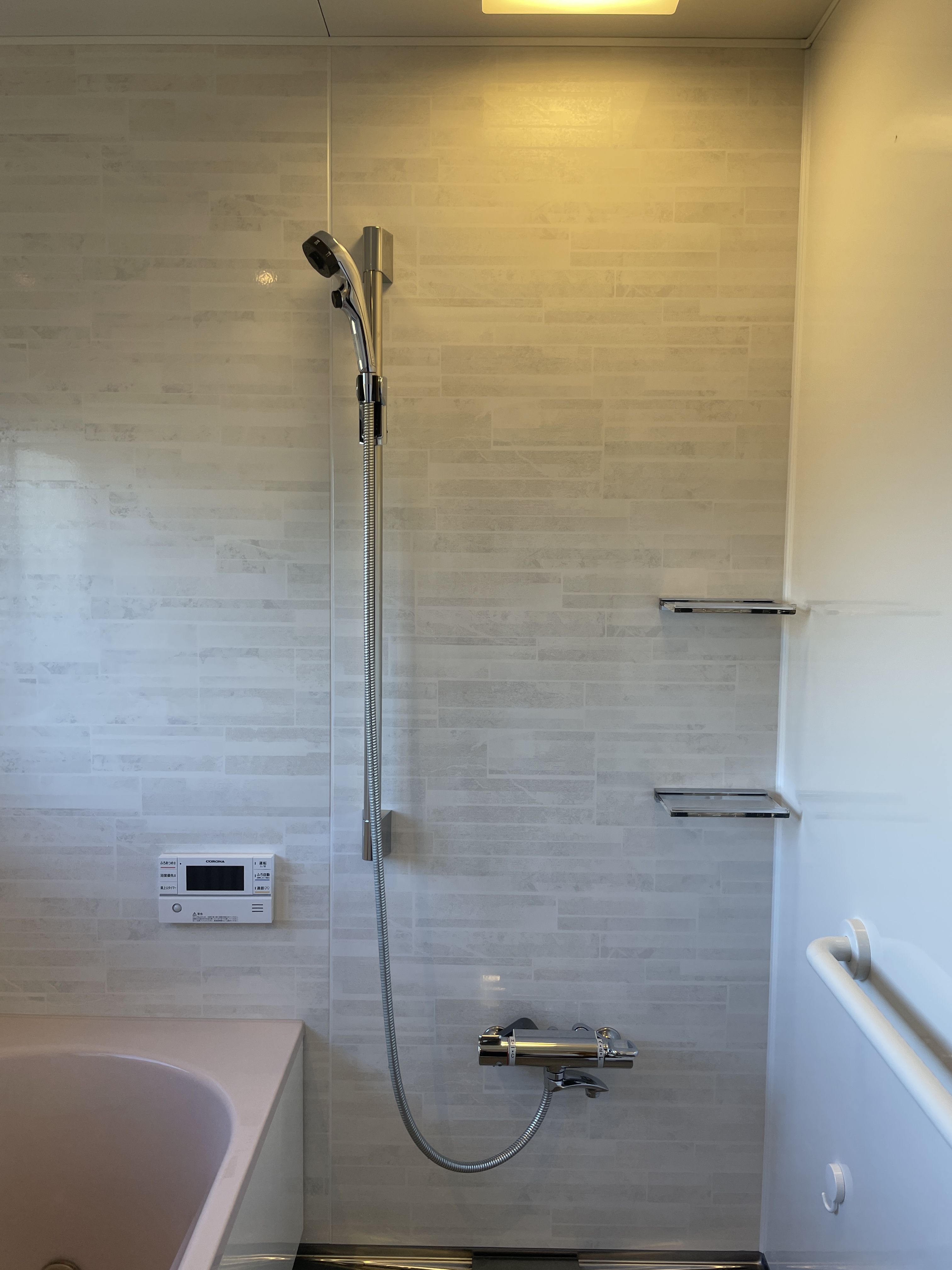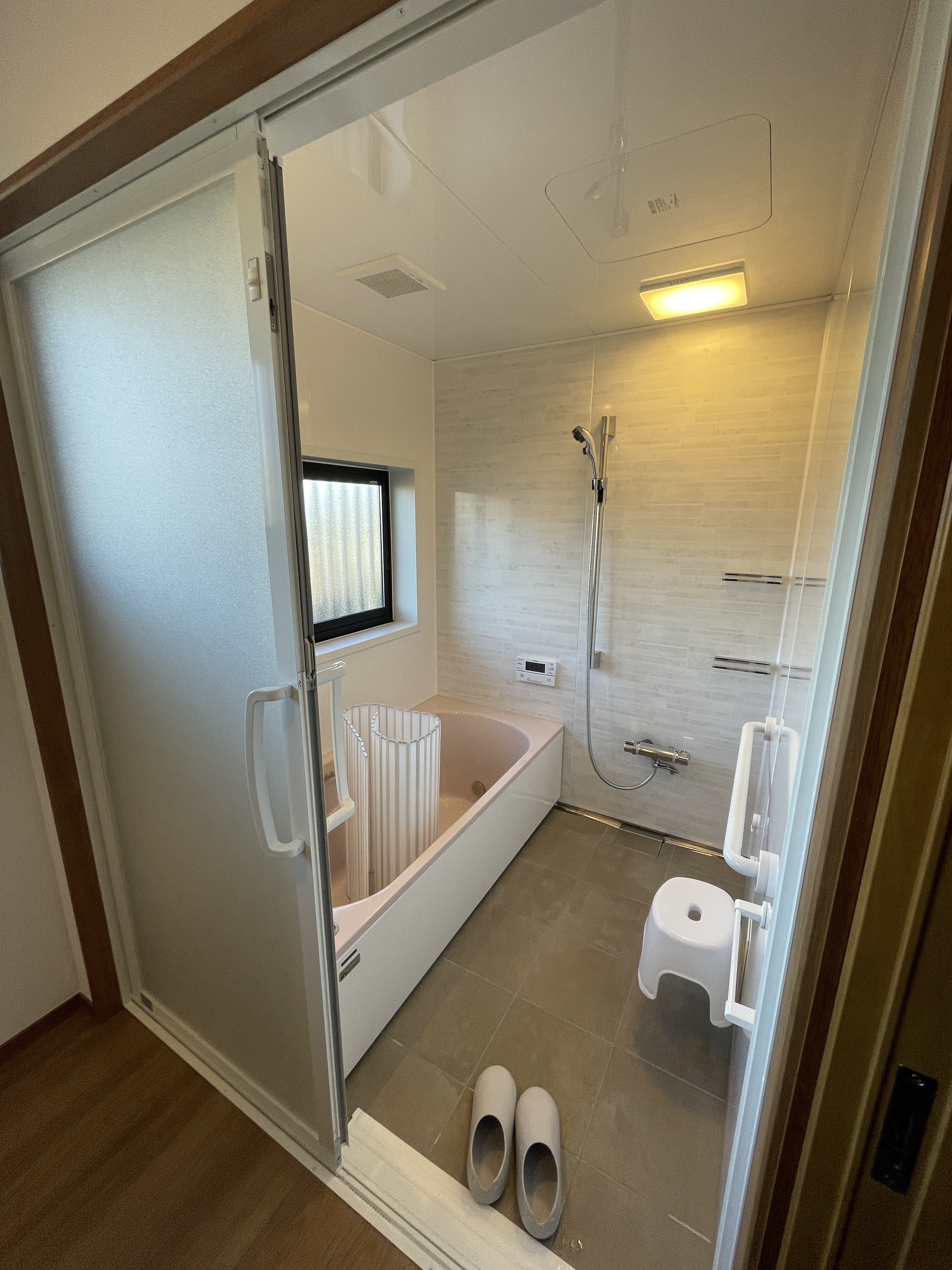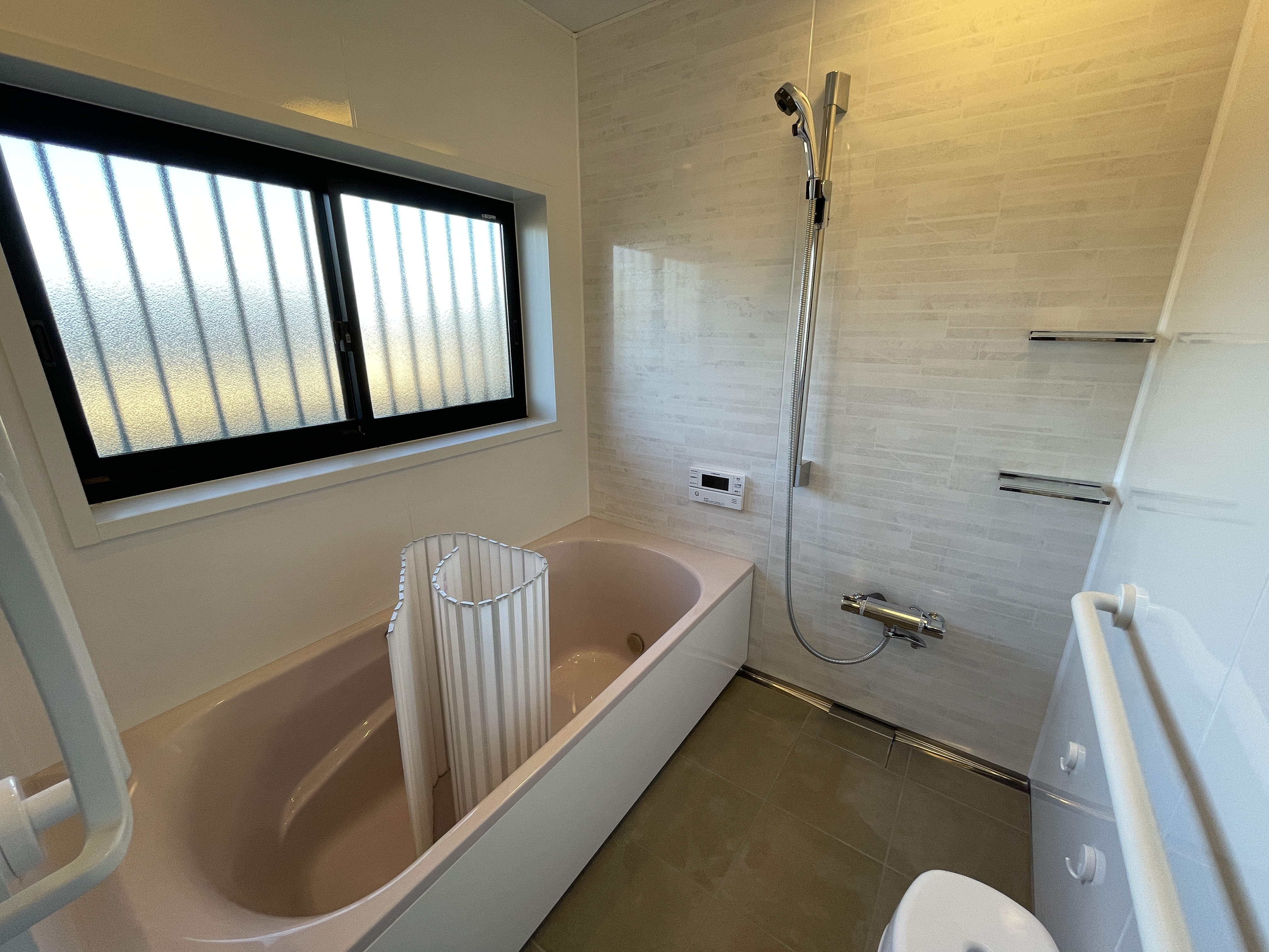 - 今回のリフォームでは、ユニットバスへの入れ替えにより、安全性と快適性を大幅に向上させています。浴槽は出入りしやすい形状を採用し、洗い場には滑りにくい床材を使用。さらに、汚れができやすい鏡とカウンターをなくしたことで清掃性も向上させています。冬場でも冷えにくく、快適な入浴時間を実現しています。 【担当者コメント】 壁面には明るい色合いのパネルを取り入れ、空間全体が広く感じられるよう配慮しました。窓まわりも新しく整え、採光と断熱性のバランスを取りながら、清潔感のある明るい浴室空間へと生まれ変わっています。これからも、暮らしに寄り添ったリフォームをご提案してまいります。