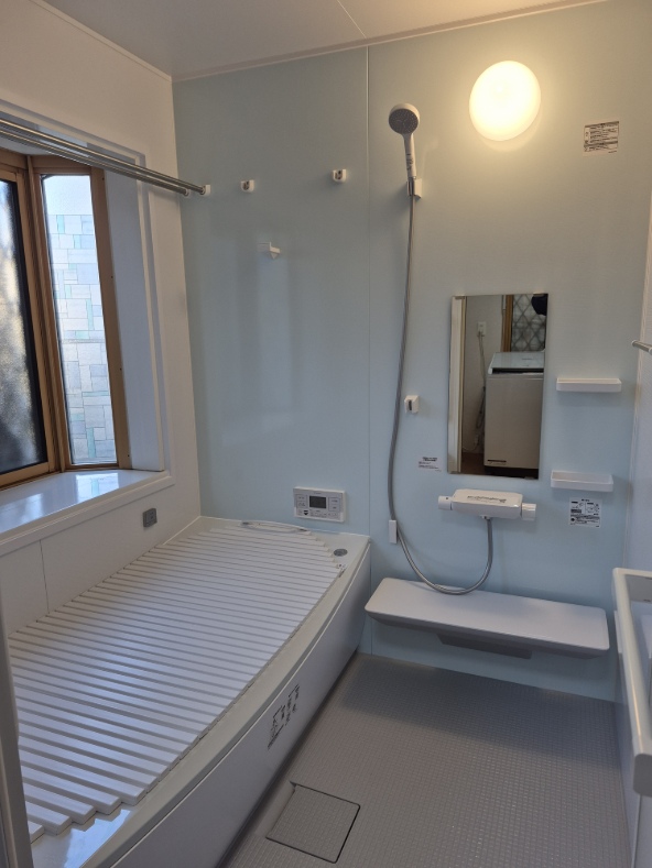 - キッチンはホワイトで統一し、清潔感のある空間に仕上げました。背面収納の上にもタカラスタンダードの「ホーロークリーンキッチンパネル」を設置。マグネットが付くので収納を増やしたり、ホワイトボードとして活用したり、お客様の好きな使い方が楽しめます!勝手口のドアも新しいものに取り替えました。